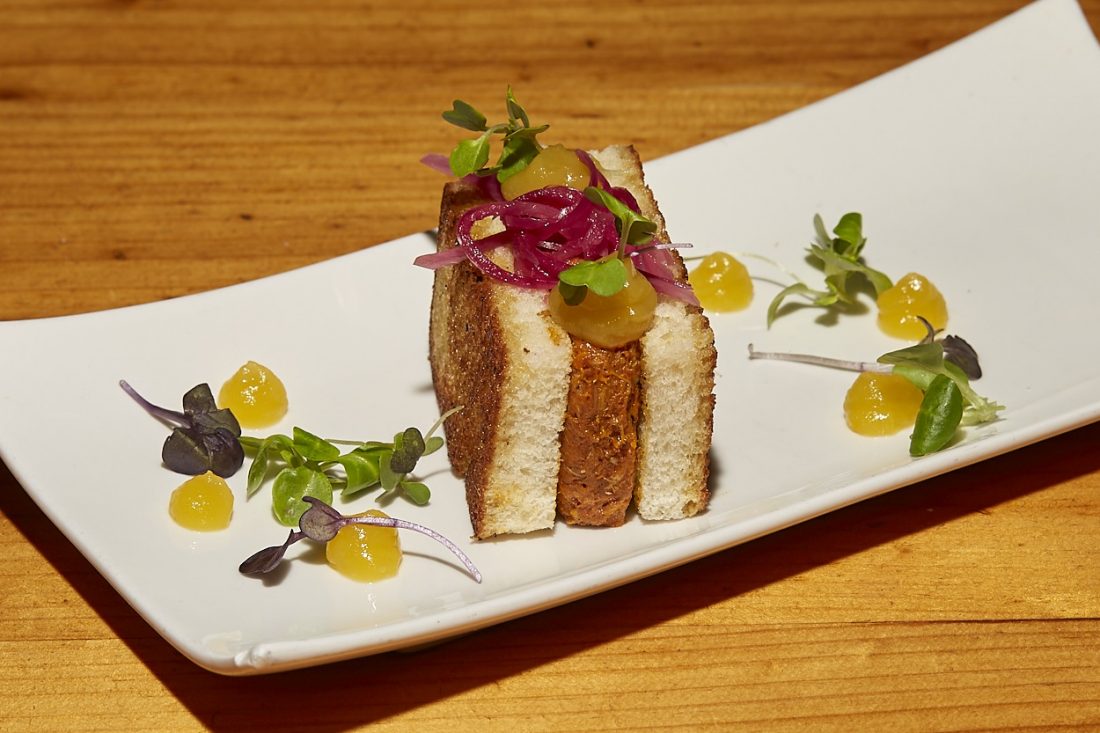 NOMBRE DE LA TAPA: Sandwich de brioche con adobo de ibérico y gel de naranja