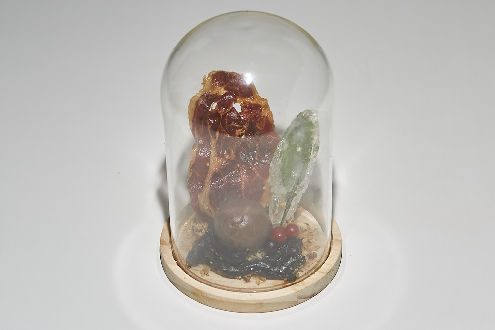 TAPA: «LO QUE EL CIERZO NO SE LLEVÓ: EL ALMA DEL TERNASCO» Bombón salado de casquería de ternasco de Aragón IGP (asadurilla, callos y riñones) Glaseado en vino del Somontano. Servido sobre un paisaje aragonés de tierra, pan, setas, trufa y bruma de romero. No apta para celíacos