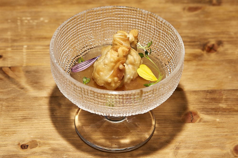 TAPA: «SAQUITO DE IDEAS DE CORDERO» Empanadilla en forma de saquito rellena de Ternasco de Aragón IGP. No apta para celíacos.